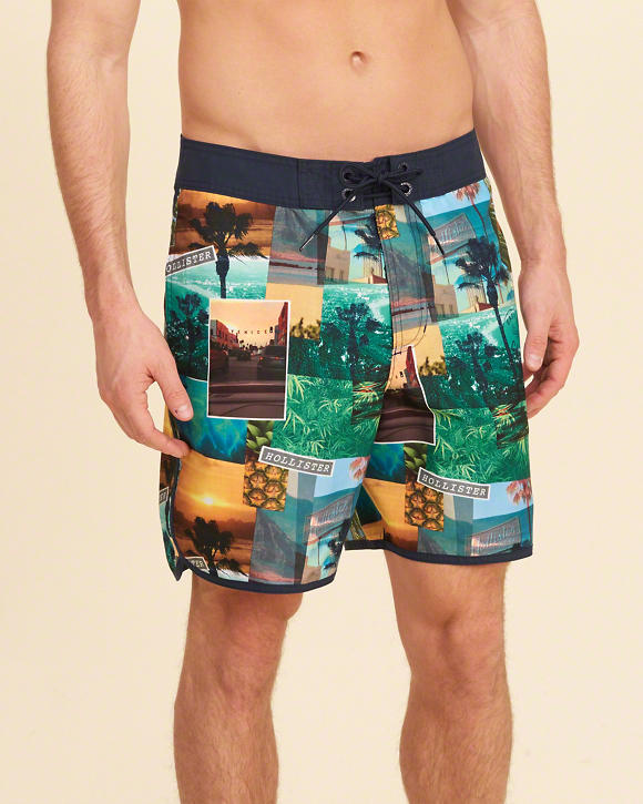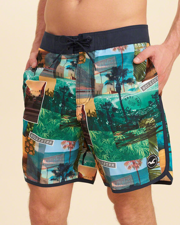 Cool boardshorts made with rigid fabric, side pockets, lace-up front detail and icon at left leg, Imported