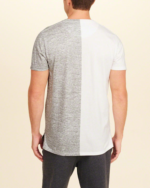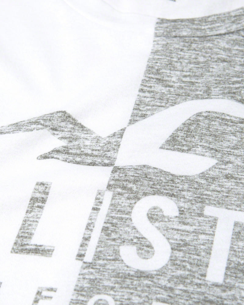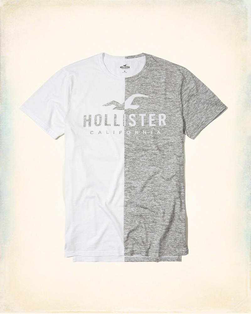 A soft, jersey tee featuring split logo graphic print, colorblocking and crewneck, Slim Fit, Imported